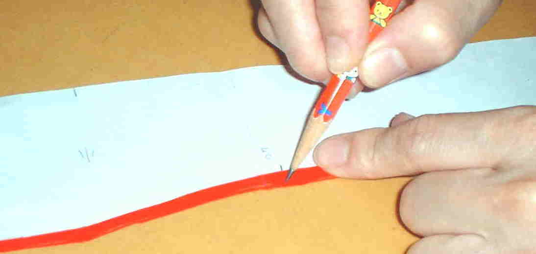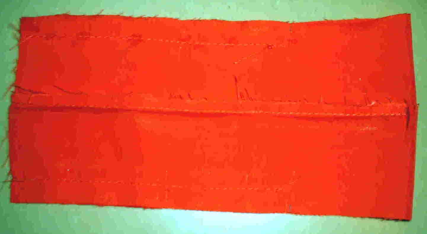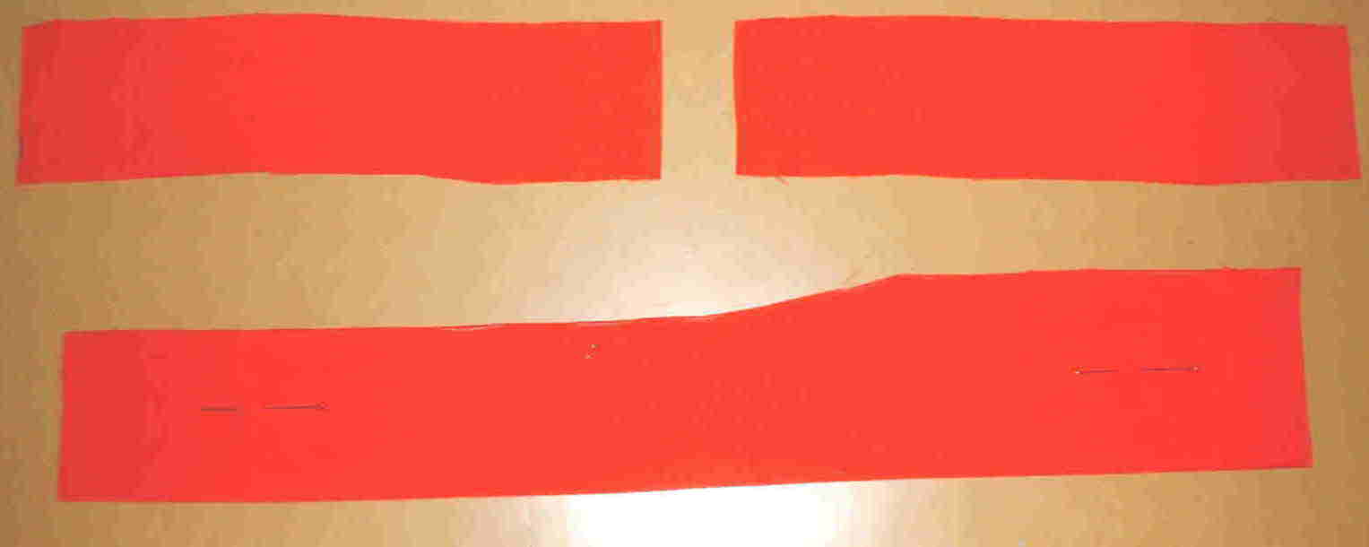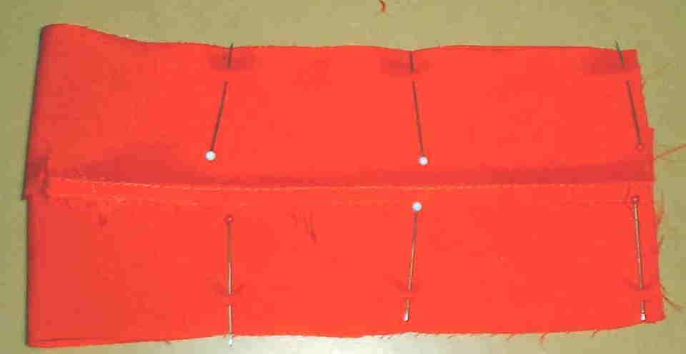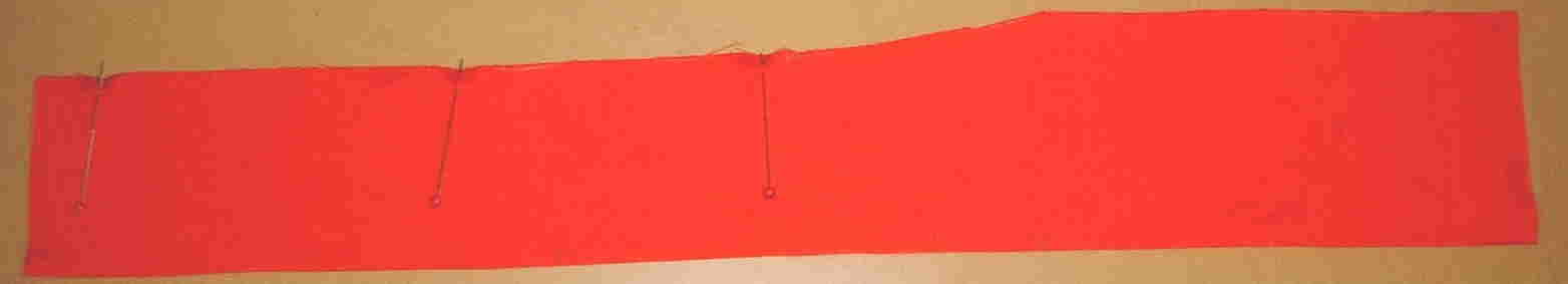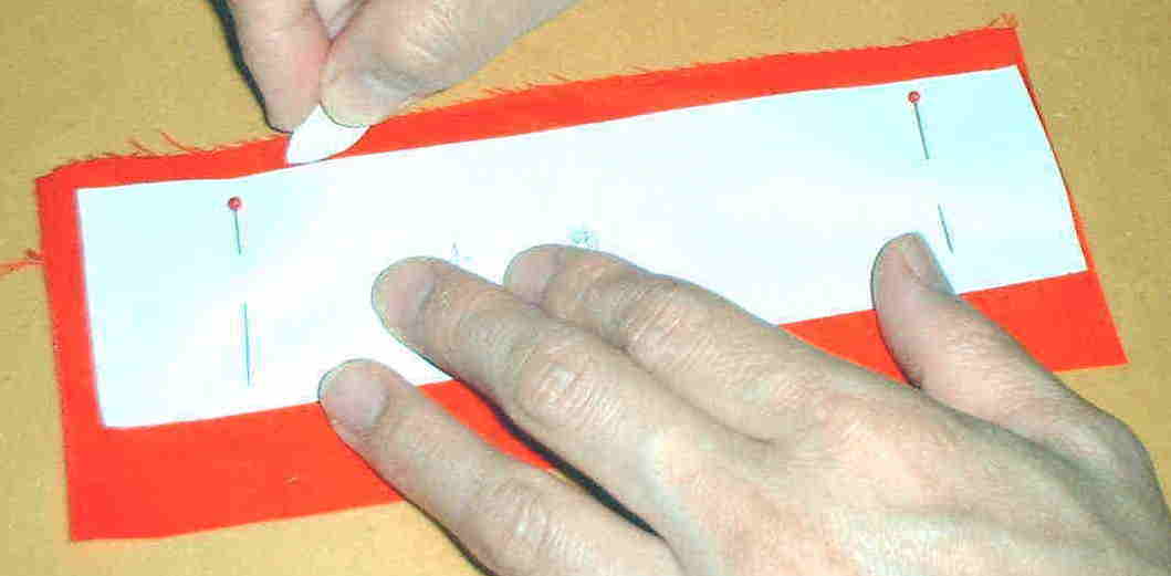 余った部分で袖の裏地を取る。同じように待ち針を打ち、印を付ける。