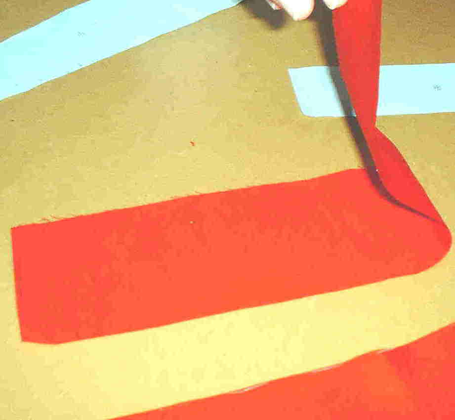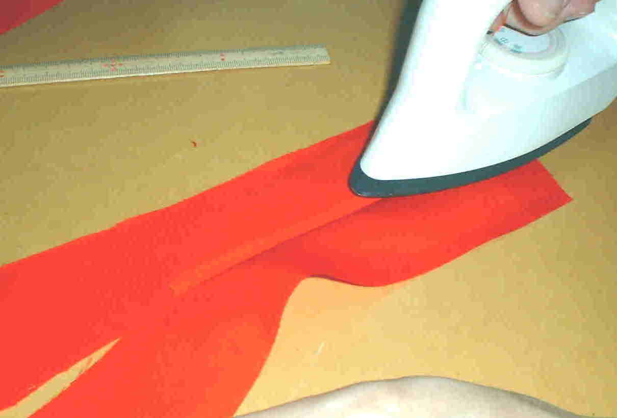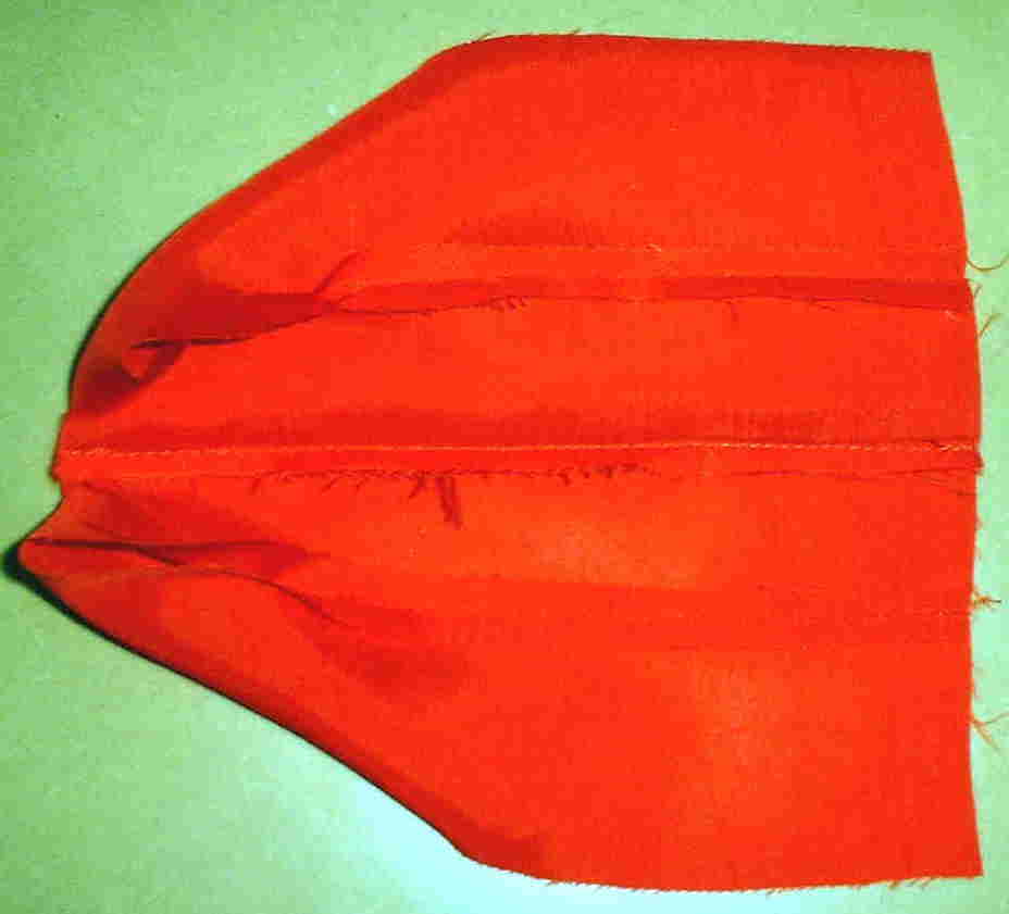 折り曲げた部分に身ごろの型紙をのせる。(身ごろ用裏地2枚)