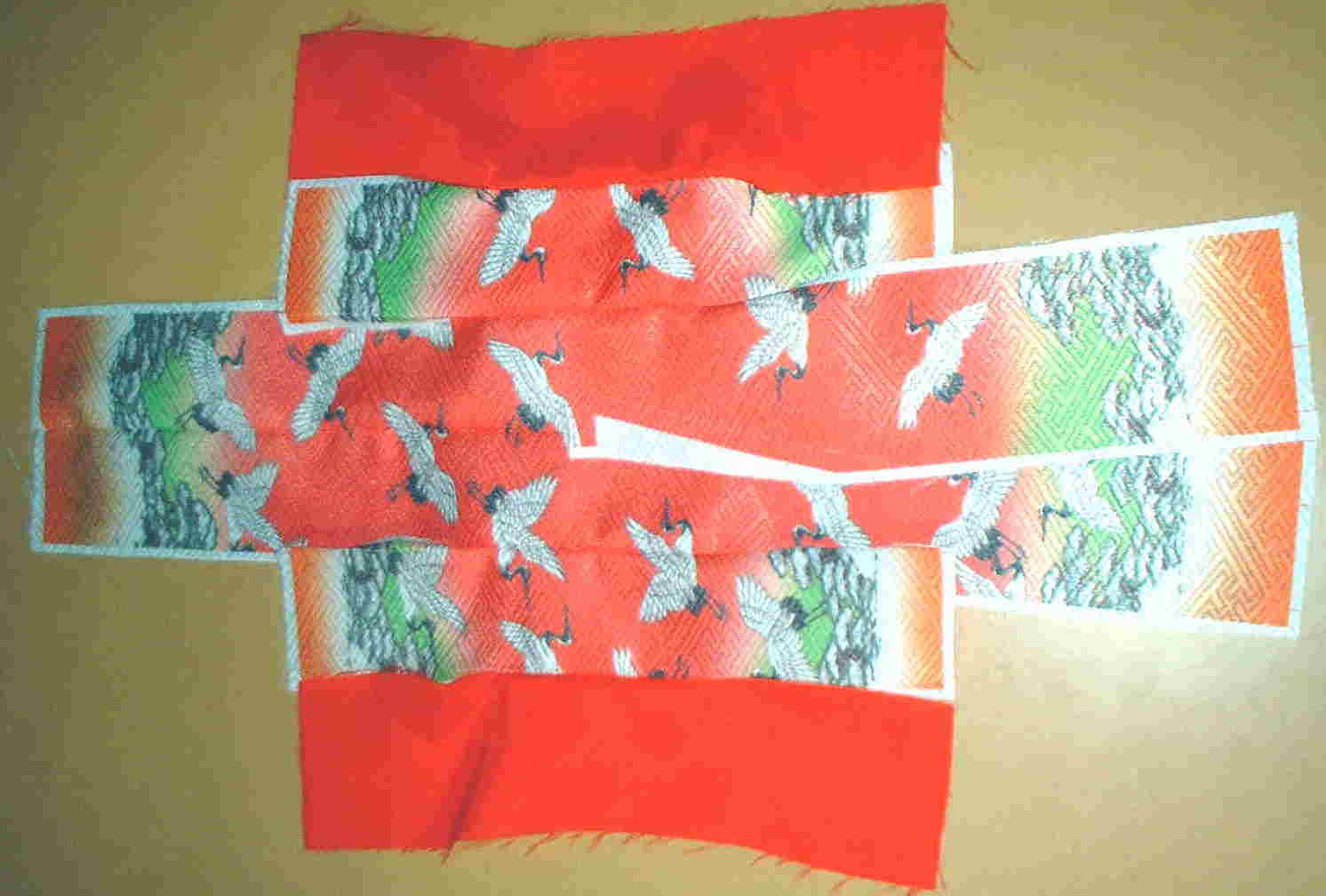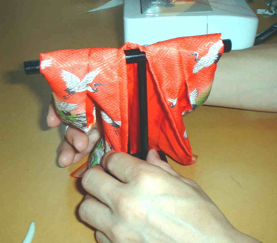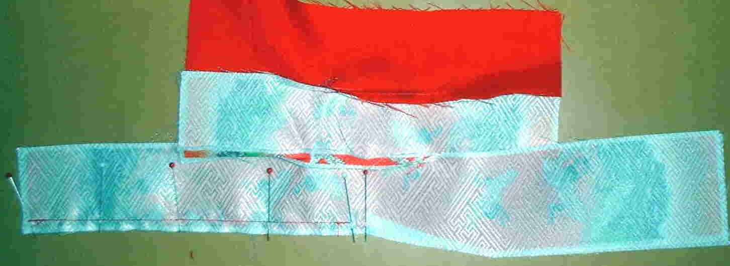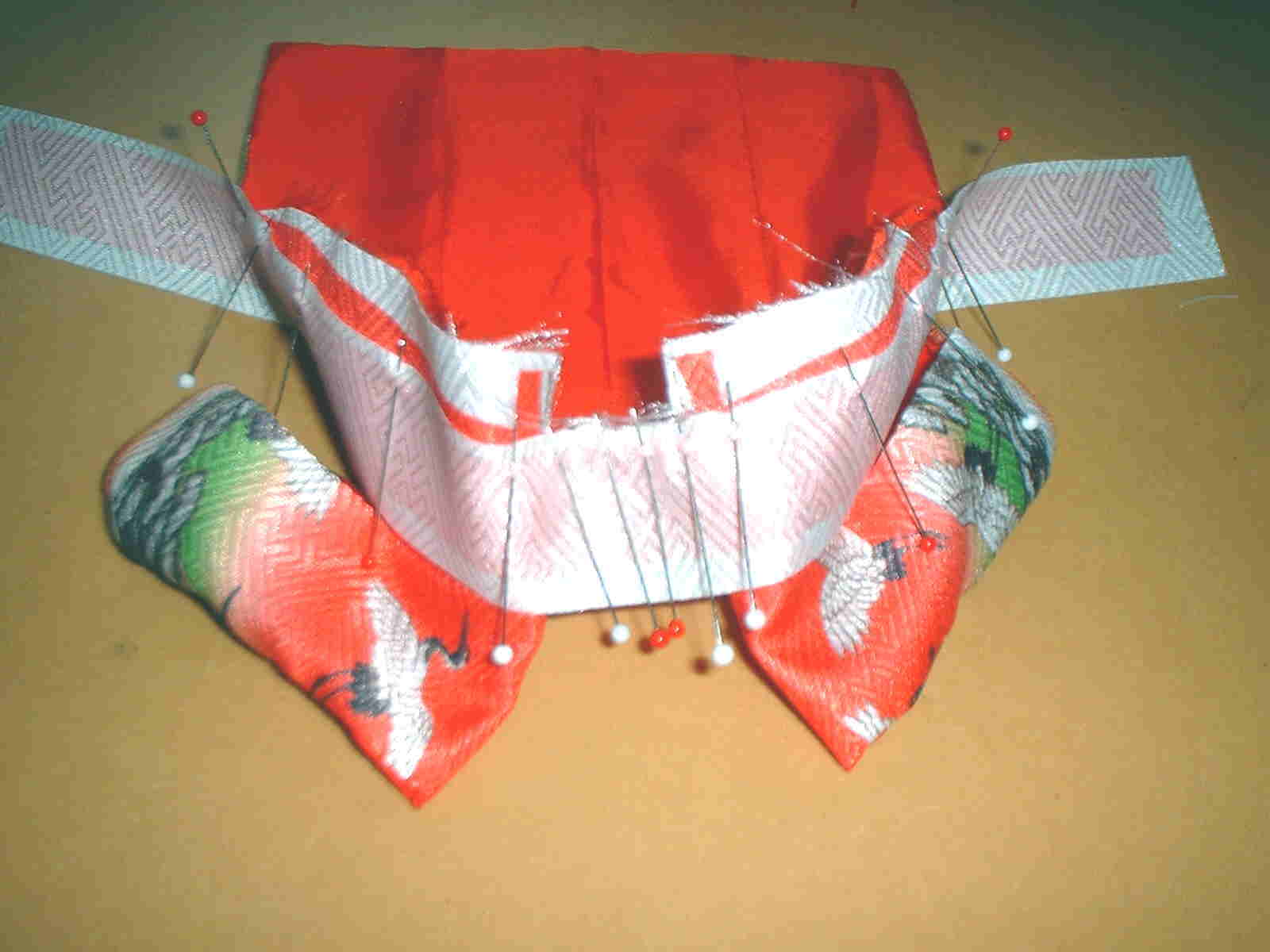 衿付け。 衿に柄がある場合は方向に注意する。柄がない場合はどちら側でも良い。