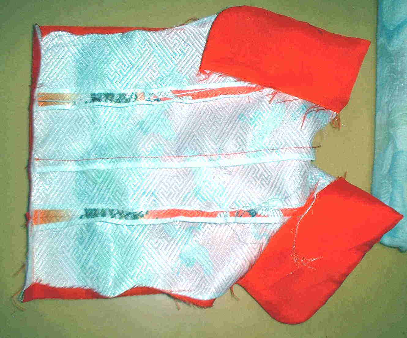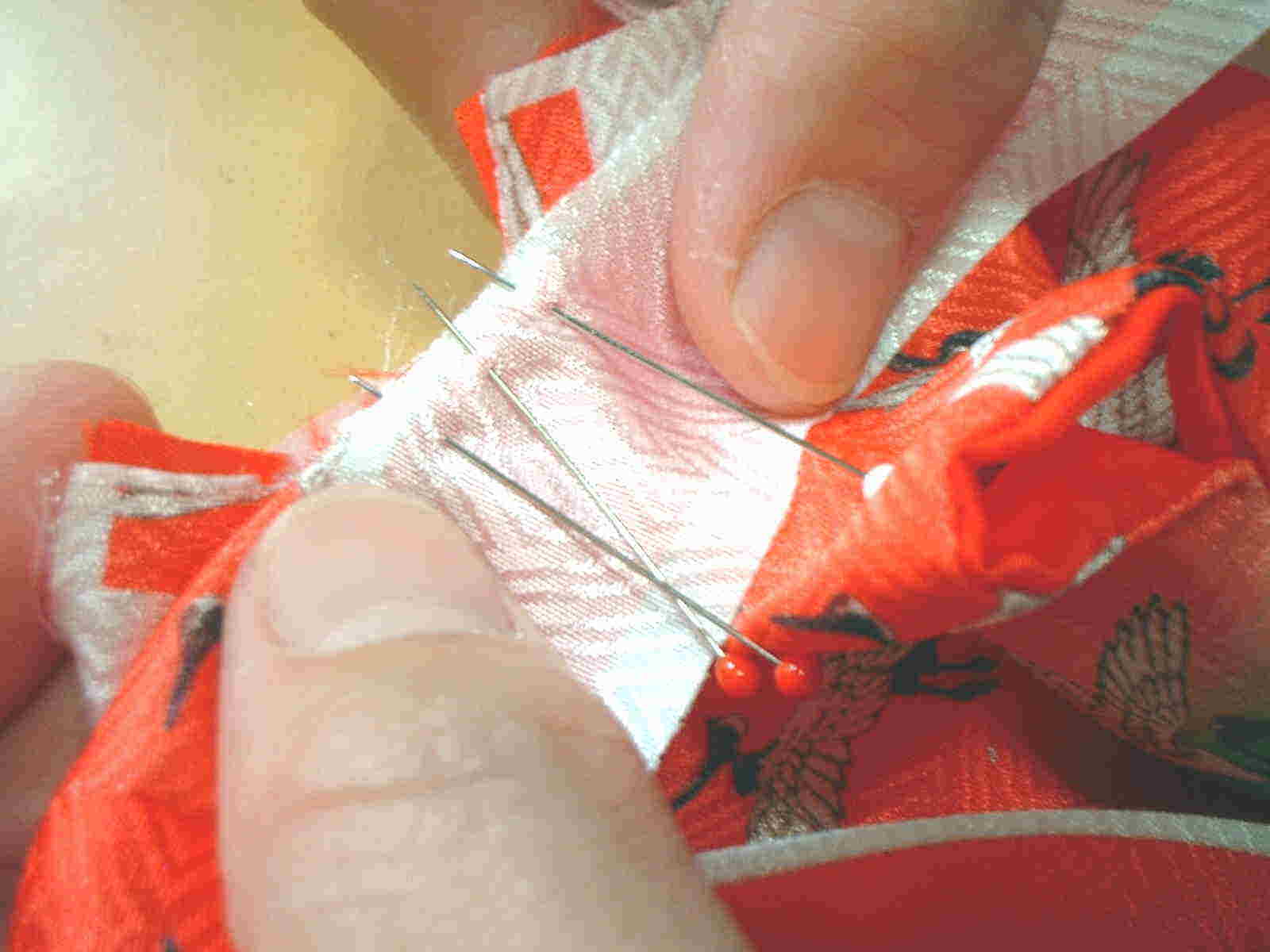 身八つ口・振り・袖付け部分の表地と裏地をとじ合わせる。