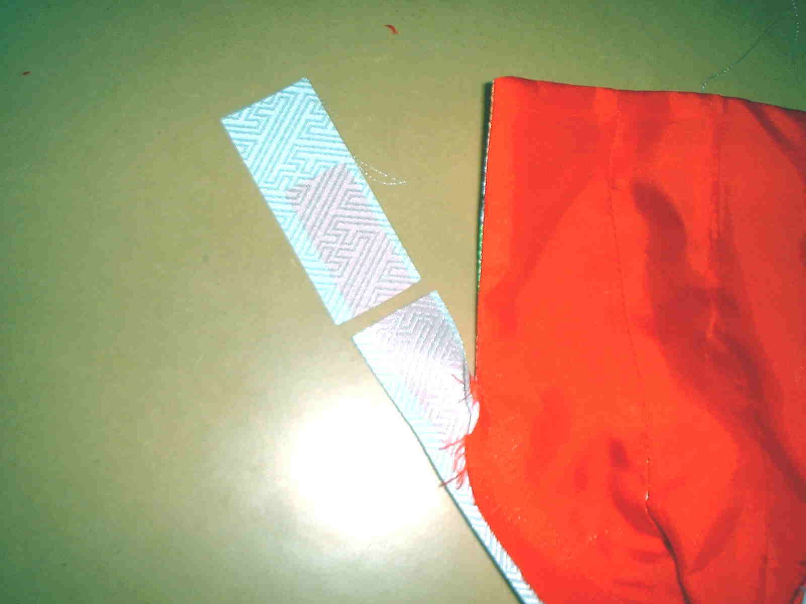 余分な縫い代を切る。 衿付けと反対側の縫い代を折ってアイロンをかけておく。