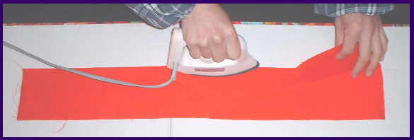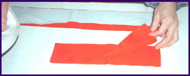 3.裏地の大きいほうを、細長く半分に折りアイロンかける。