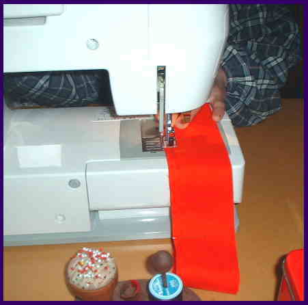 ミシンまたは、手縫い。 輪になっている所を、切り離す。