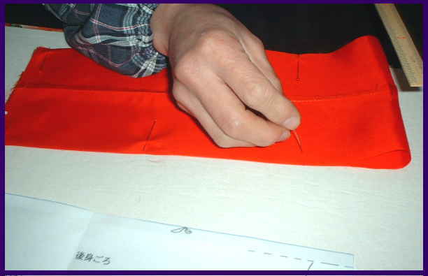 待針を打ち、縫う。