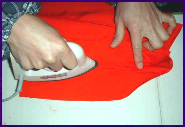 広げて、背縫い部分にアイロンをかけて、縫い代をおちつかせる。