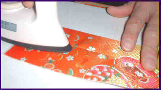 背縫いにアイロンをかける。縫い代を説明書の方向に折りアイロンをかける。