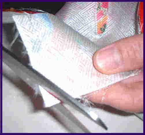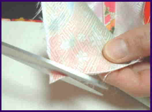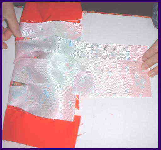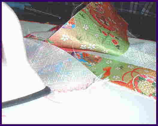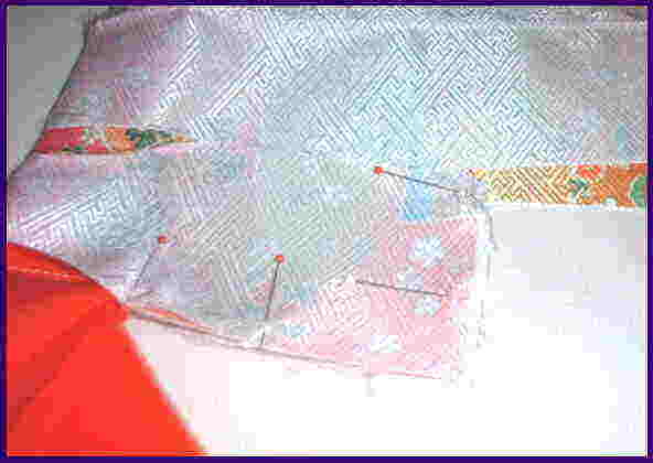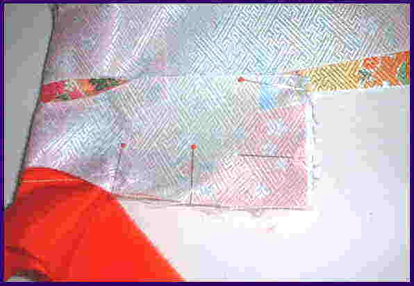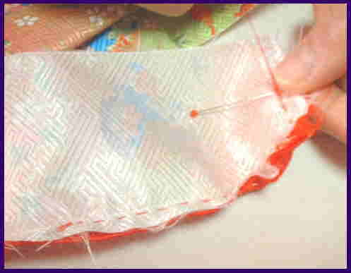 振り部分の、表地と裏地を縫う。 脇縫い B、C