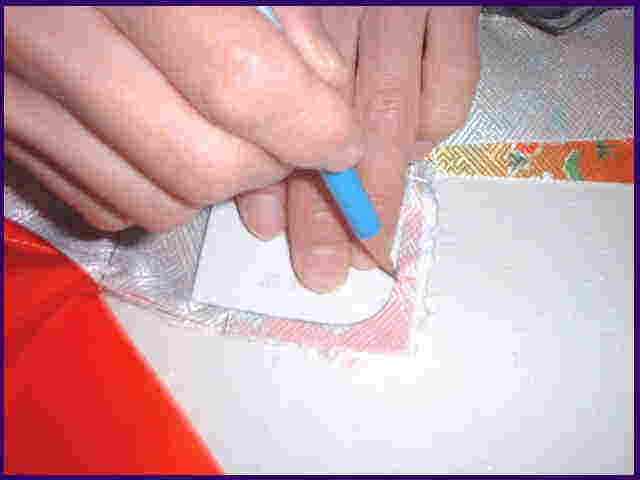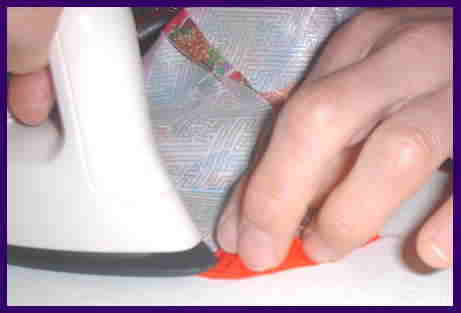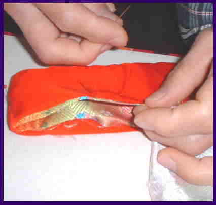 少しギャザーを寄せる。ギャザーがもどらないよう、