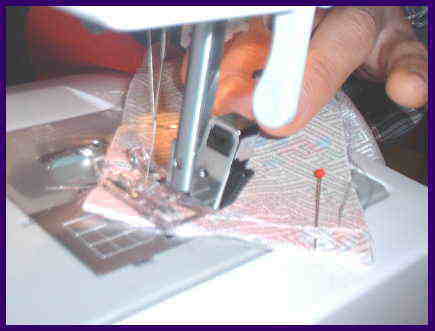 袖口の位置から、袖下の部分まで縫う。 丸み部分の角を少し切り落とす。