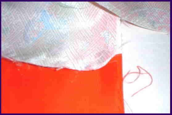 縫い目より、縫い代側を縫い丸み部分は、縫い糸を引いて 袖下部分(丸みを縫った後)は、裏地のみ縫う。