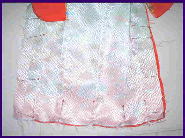 平になる様に、広げたるんでいるところは、待針を打ちなおす。 縫う。