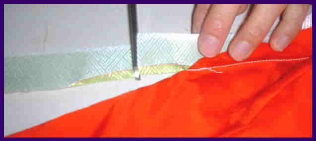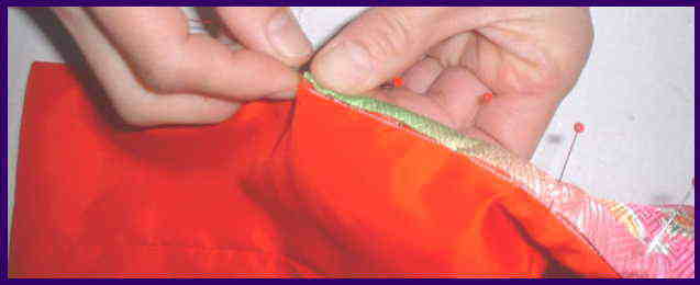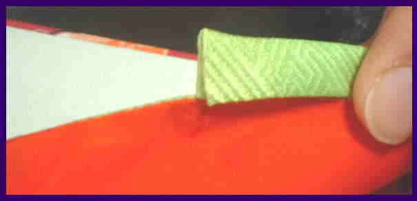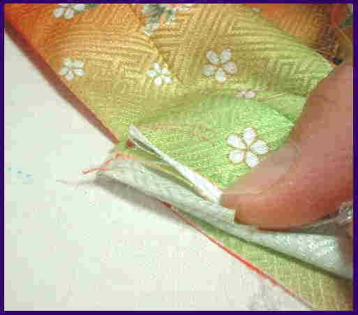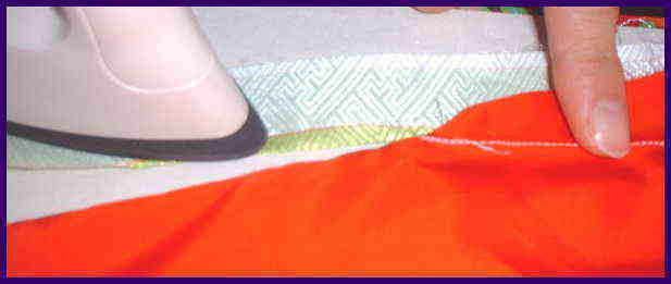 えり付け側の縫い代を折りアイロンをかける。 長いので、2cm程を残して切る。