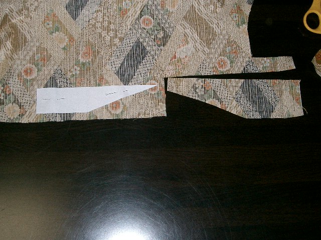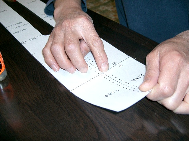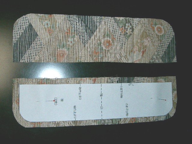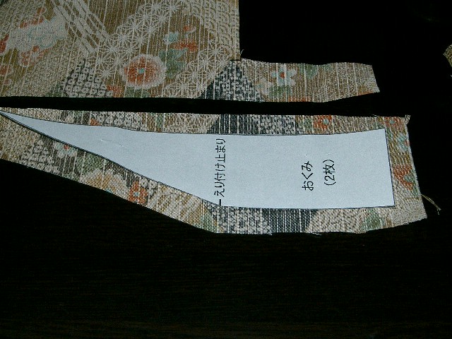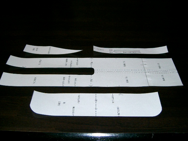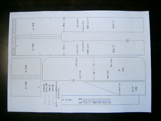 (2)型紙の完成、身ごろ、おくみ、袖、えりの4つの部分が出来る。