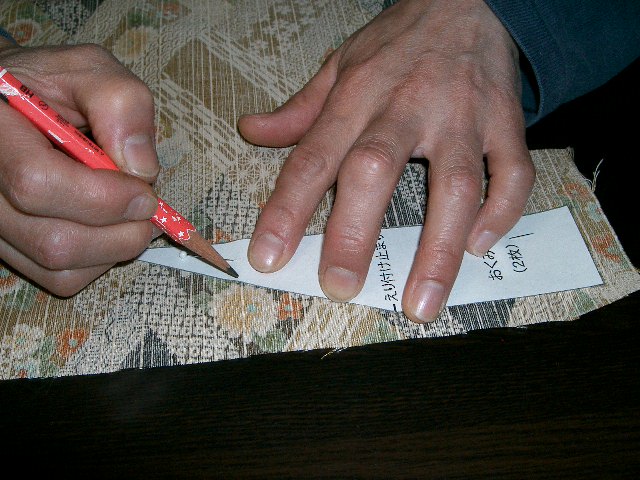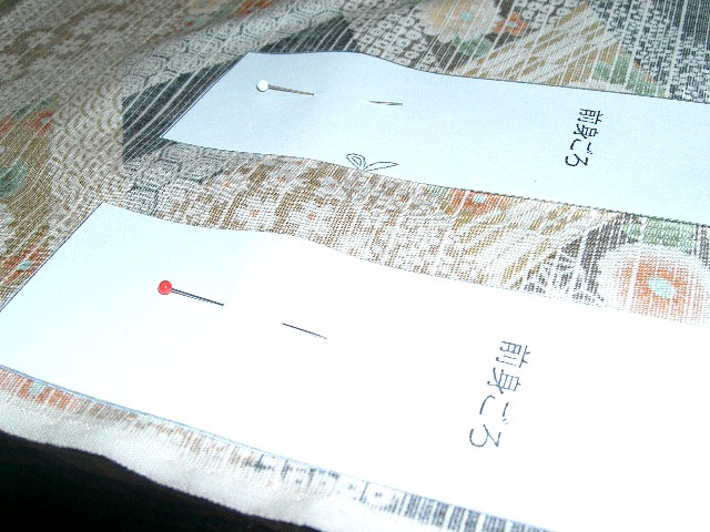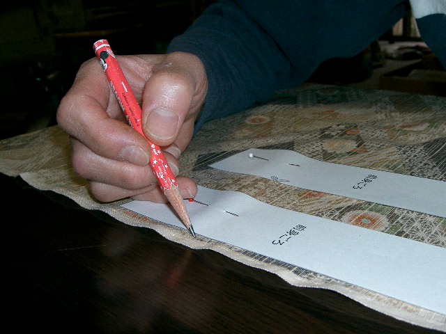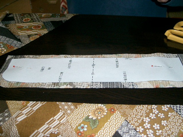 表地の裏に型紙を置き、動かないように待ち針で止める。