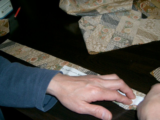 前身ごろは印を付けて縫い代を取り切り開く。この時、縫い代の幅を同じに切り揃えておくと