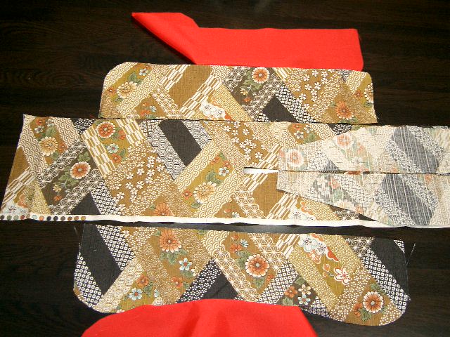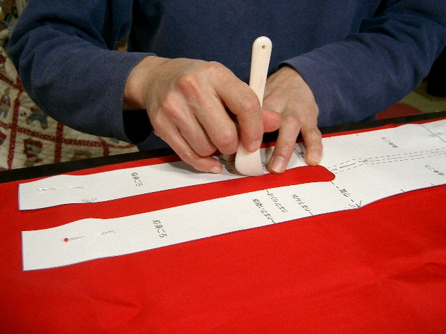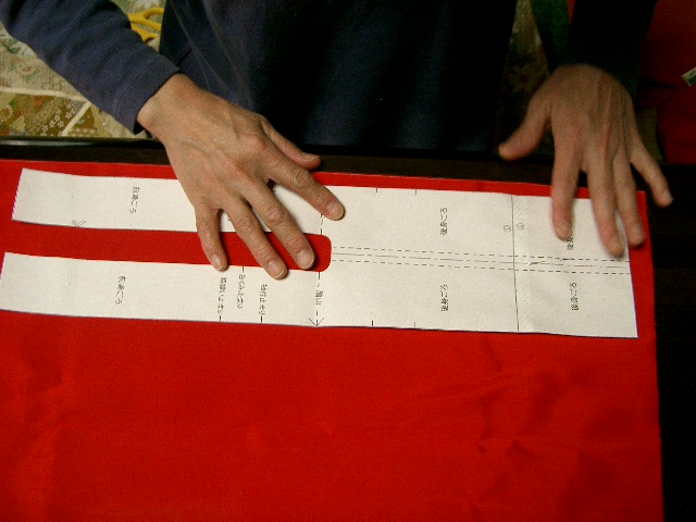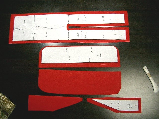 | 裏地は、身ごろ・袖・おくみを表生地と同じように裁断する。 衿は必要なし。 |