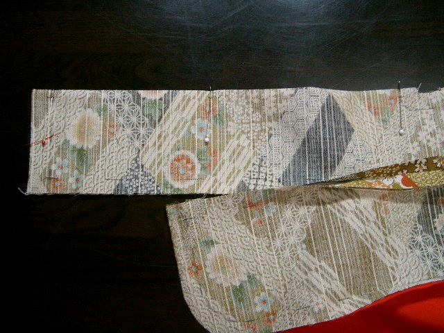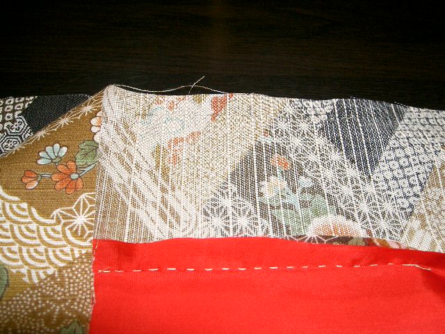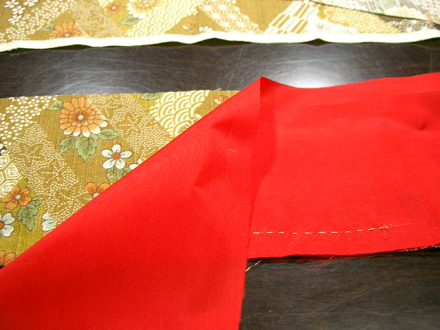 | 背縫いは、後身ごろを中表に合わせ、0.5cmの所を 縫う。 |