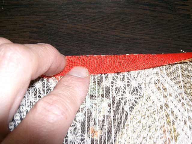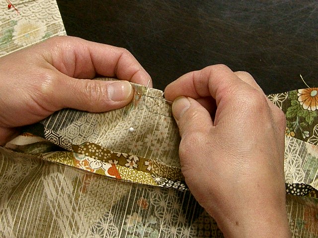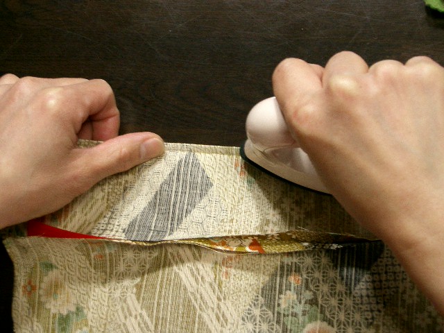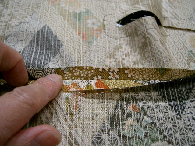 | 袖口縫い代は、縫い目で表生地側に折る。 |