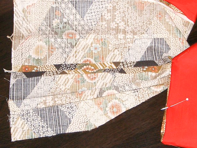 | 縫い代は割る。 | 身八つ口部分までアイロンをかけておくと良い。 |