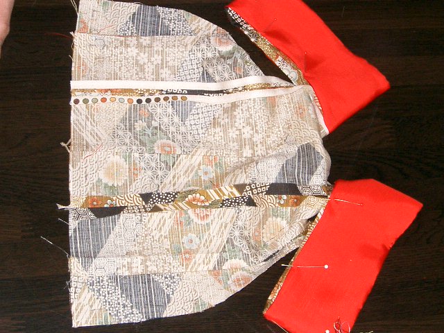 | 表生地の部分が衿を除いて全て縫い合わさった 状態。 |