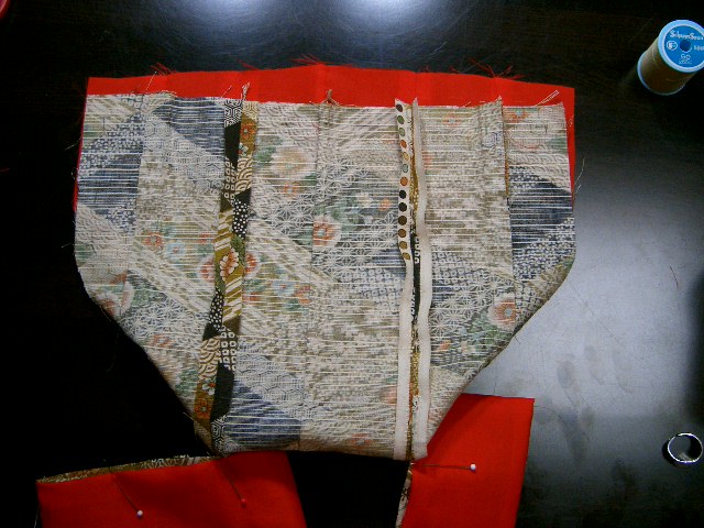 | 裏地の背縫い。表生地と同じように縫う。 |
