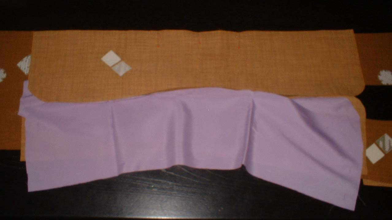 (7)背縫いの印を合わせ縫う。縫い代は、上写真の状態で手前に倒す。