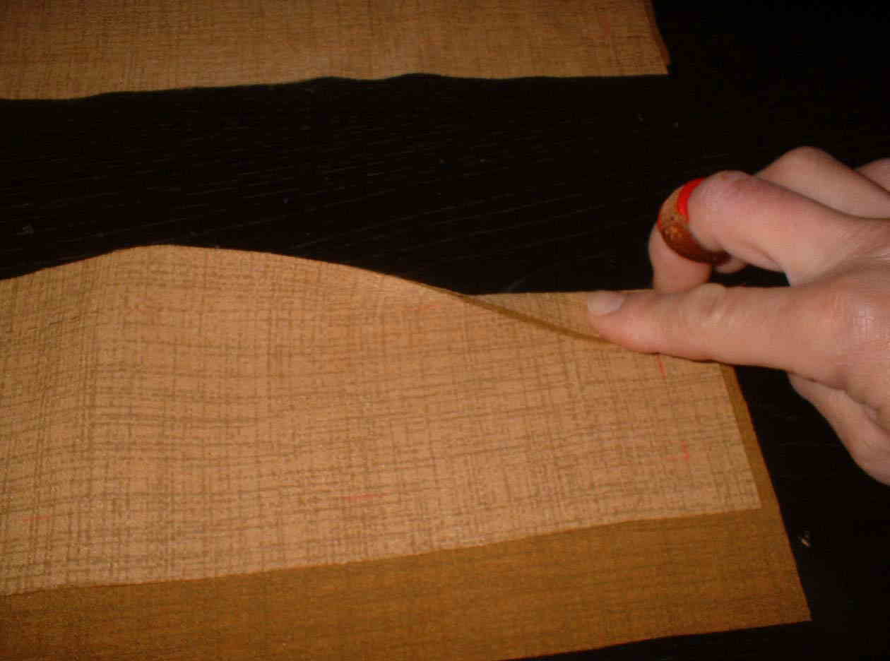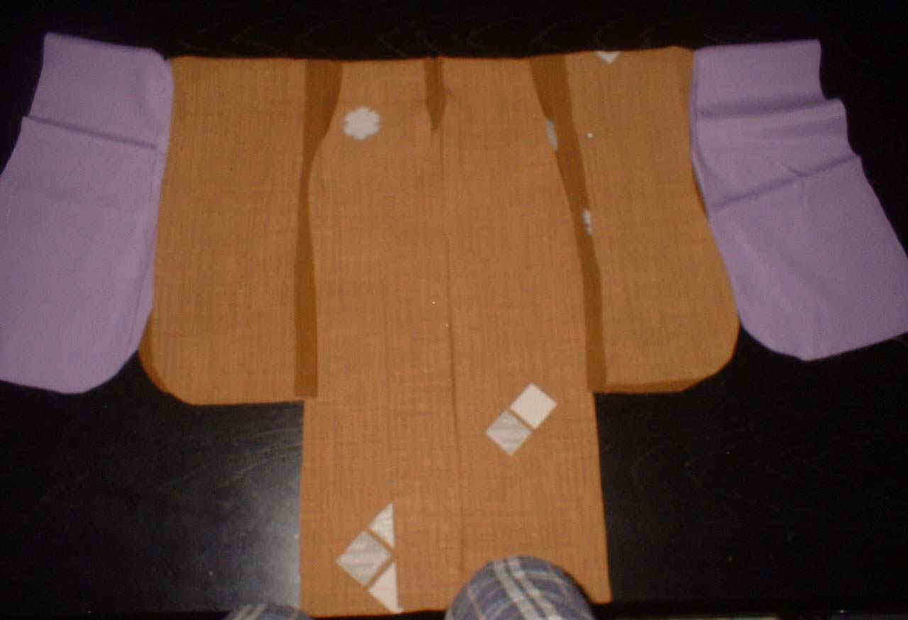 (9)袖の振り部分の縫い代を印で折り、アイロンをかけておく。