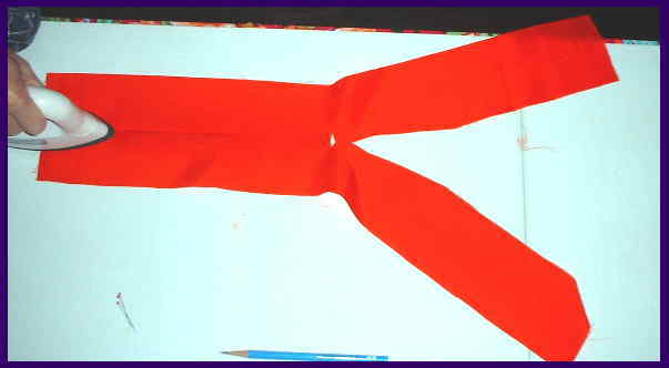 広げて、背縫い部分にアイロンをかけて、縫い代をおちつかせる。