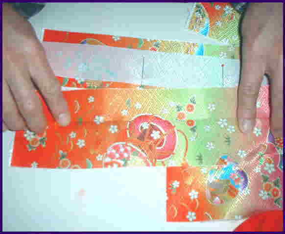 待針を打ち、柄合わせをする。