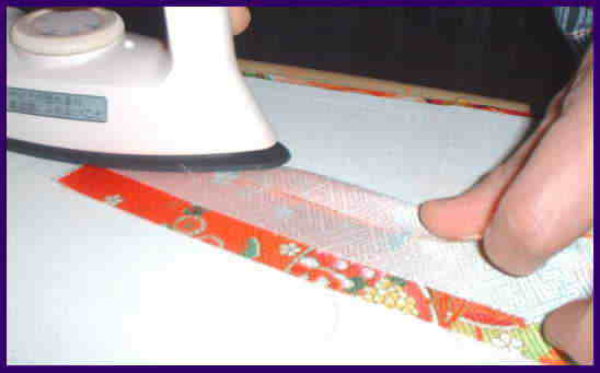 背縫いにアイロンをかける。縫い代を説明書の方向に折りアイロンをかける。