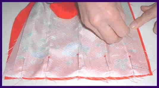平になる様に、広げたるんでいるところは、待針を打ちなおす。 縫う。