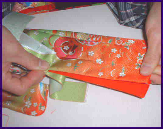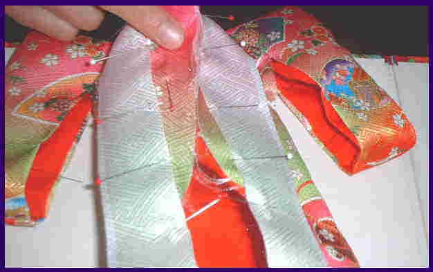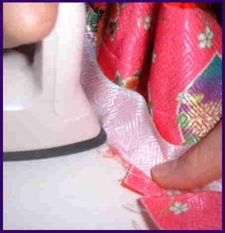 裏地の身ごろと袖を縫い、身八っ口の表地と裏地を、縫い合わせる。