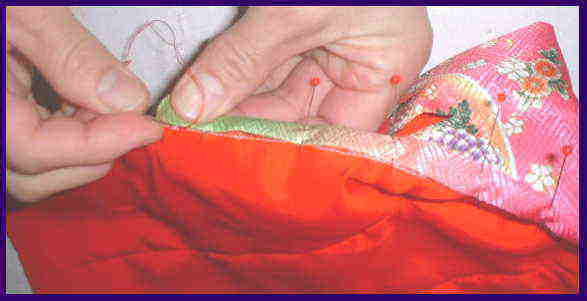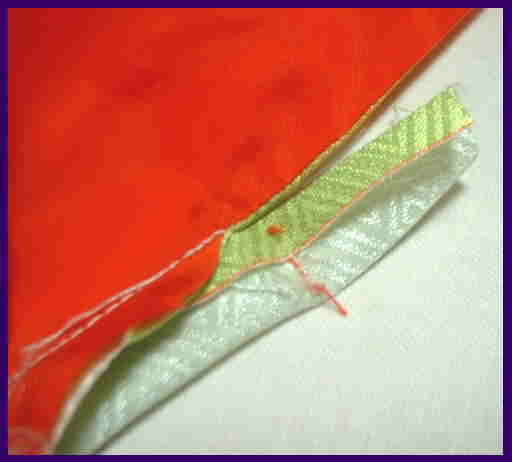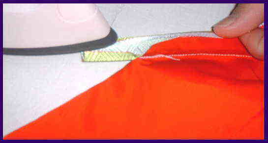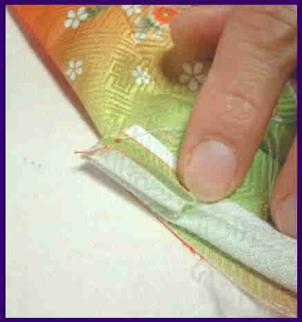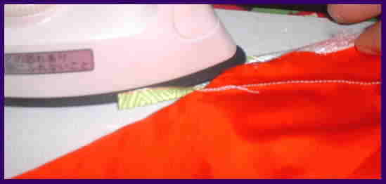 えり付け側の縫い代を折りアイロンをかける。 長いので、2cm程を残して切る。